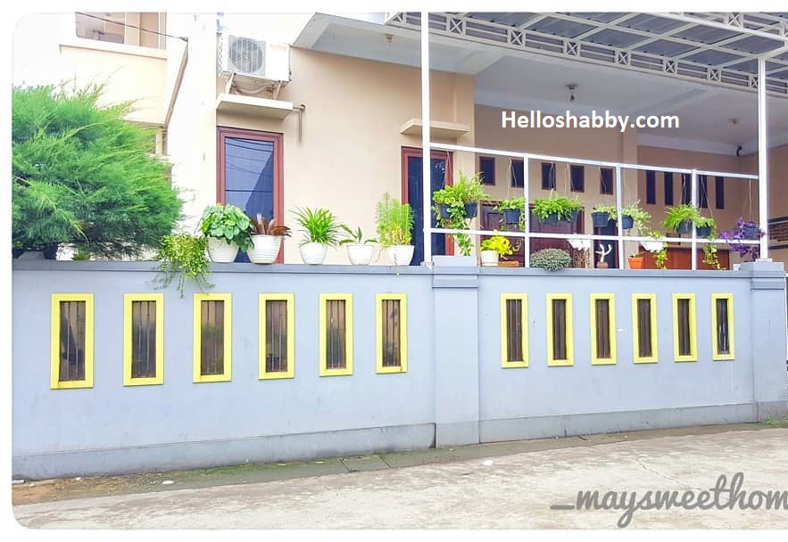 Inspirasi model pagar rumah berbahan tembok dengan desain sederhana memakai warna abu terang dengan aksen kuning pada bagian lubang tralis ini umumnya banyak ditemui di area pedesaan. Tidak terlalu menggunakan banyak material yang justru akan meminimalisir pengeluaran anda, cukup dengan pemilihan warna cat yang pas dan cantik anda sudah akan mendapatkan layout pagar tembok yang keren.