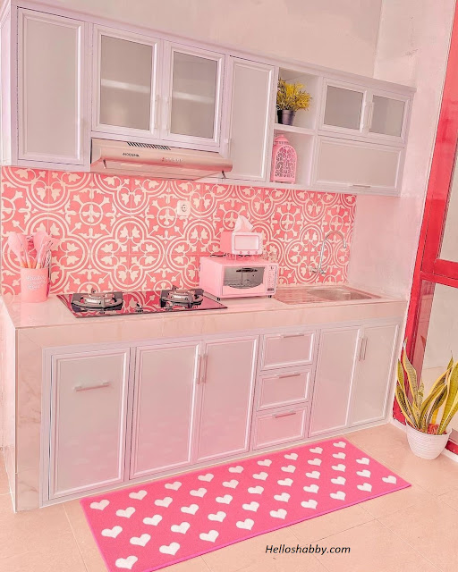 Dapur dengan backsplash pink dan meja dapur cor, nyatanya juga tampak apik dengan kitchen set aluminium. Kombinasi pink dan putih pada kabinet aluminium memberikan visual dapur yang cerah dan menggemaskan. Pilihan kitchen set aluminium sangat cocok untuk Anda yang tinggal di daerah rawan rayap. Material yang satu ini tidak akan diserang rayap.