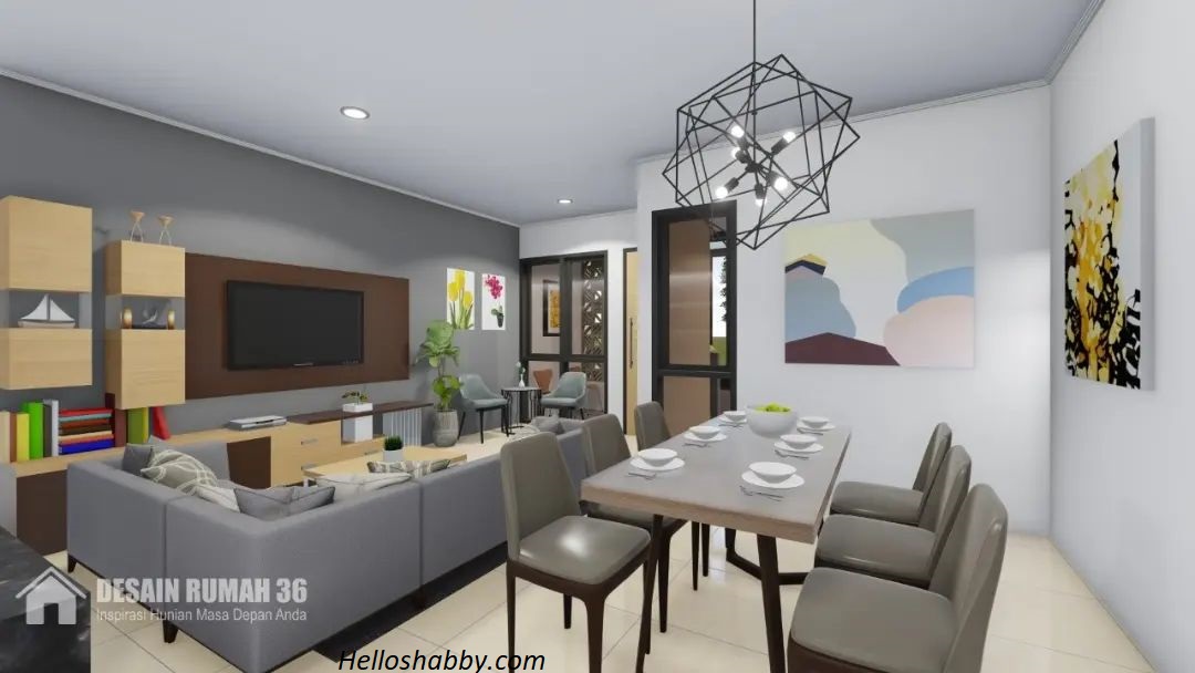Satu area dibuat dalam model terbuka, yaitu area tamu/ruang TV, area makan dan dapur. Tiga fungsi ruang yang berbeda dalam satu area. Penataan ruangan diupayakan serapi mungkin, agar ruangan tidak terkesan penuh. Pembedaan nuansa bisa dilakukan dengan meletakkan dekorasi yang berbeda, misalnya bingkai lukisan dan dekorasi yang berbeda pada setiap area.