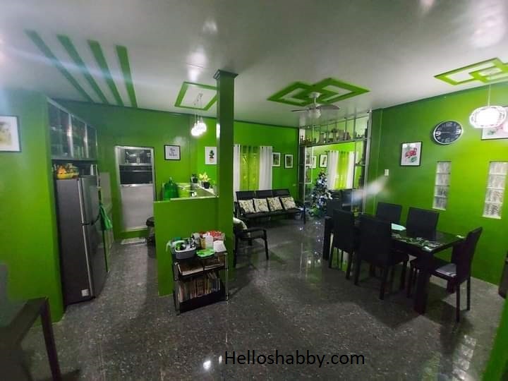 This living room will welcome residents of the house when entering the house. The bright-green paint is used for interior walls. This green wall is then nicely combined with a black sofa, giving the impression of a green space that's cooler and less flashy. The green living room is more lively with the family's favorite ornaments.