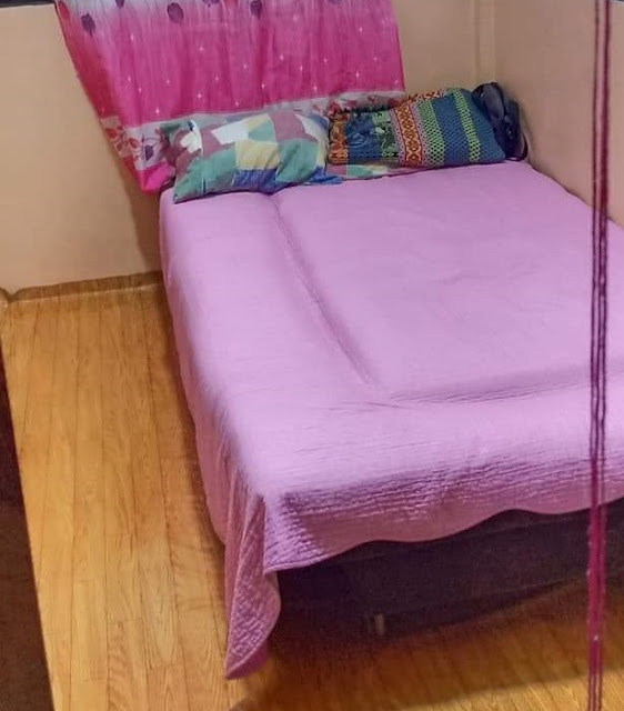 For the design of the bedroom of this house has a size that is wide enough so you can maximize it. Equipped with a pink mattress and looks harmonious with the curtains of the room. This bedroom also has a glass window and a closet as a storage place so that it is neater and cleaner.